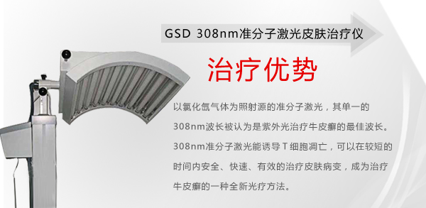 美国GSD-308nm准分子光集成308nmXeel准分子激光光源,计算机照射剂量精密,因此与传统的治疗方法相比技术更先进。